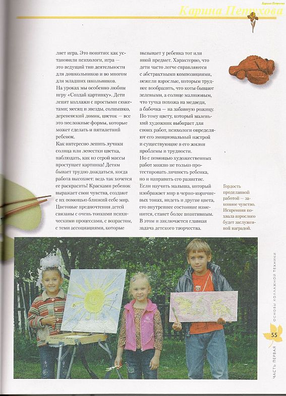 Мы коснулись лишь небольшой части основ составления коллажей в технике "терра". Но и этого, на первых порах, вполне достаточно, чтобы оценить новую технику. Дальше дело за вами. Пробуйте, экспериментируйте, ищите.