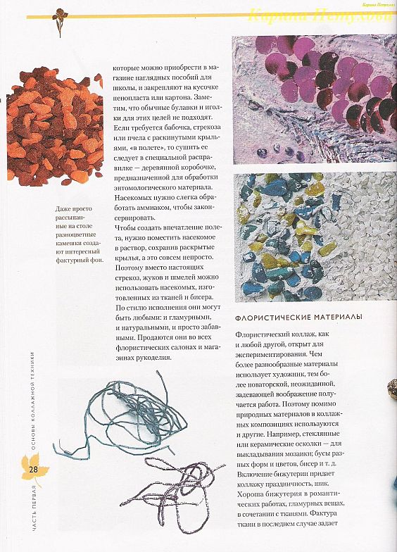 Основы коллажной техники. Материалы, этапы работы, техники изготовления фона, основные техники работ, работа с флористическим материалом, оттиск, обрамление работ, жанры коллажа, архитектурные мотивы, абстракция, галлерея коллажей.