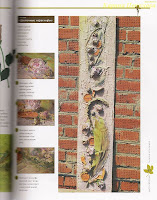 Особенность распределения дополнительного материала в коллажах "терра" заключается в том, что он не наклеивается, не закрепляется специальными приспособлениями, а "вмазывается" в раствор, вводится в фон. После этого излишки раствора аккуратно вычищаются и коллаж сохнет.