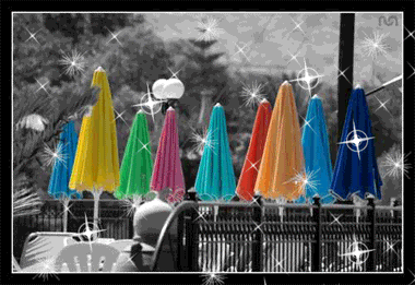 Очень понравились красные зонтики в небе!