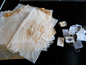 Так почему же именно чайный пакетик? Потому, что их делают из очень тонкой прозрачной бумаги, кроме того, они уже выглядят как состаренная бумага, т.к. при использовании покрываются красивыми чайными разводами. А ещё, потому что их можно использовать для декупажа или рисовать на них красками и карандашами, получается очень симпатично.