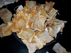 Мне очень нравятся прямоугольные пакетики, которые сложены пополам и скреплены сверху. Они хороши тем, что когда их разворачиваешь, получается довольно большой кусок бумаги. Иногда, если повезет, можно также найти интересные этикетки, их тоже можно пустить в ход.
