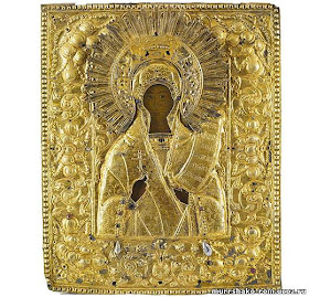 | Икона "Св. Параскева". Россия, 30-40-е гг. XIX в.Дерево, левкас, сусальное золото, темпера. 29,5Х23,5. источник :http://www.gelos.ru/ |