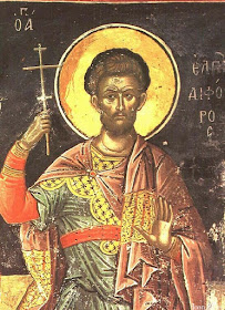 Мч. Елпидифор. Миниатюра. Афон (Иверский м-рь). Конец XV в. C 1913 года в Российской Публичной (ныне Национальной) библиотеке в Санкт-Петербурге. |
