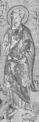 | Ап. Гаий. Миниатюра. Афон (Иверский м-рь). Конец XV в. C 1913 года в Российской Публичной (ныне Национальной) библиотеке в Санкт-Петербурге. |