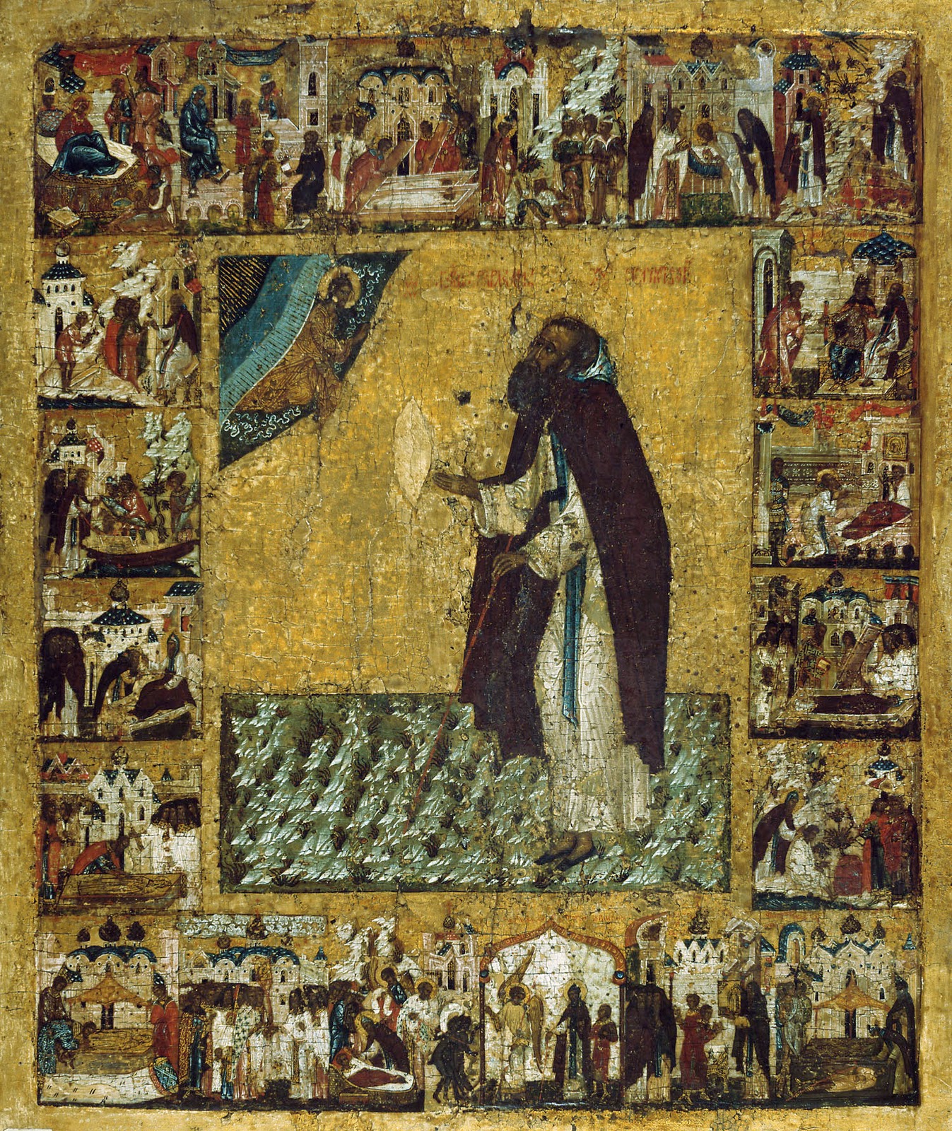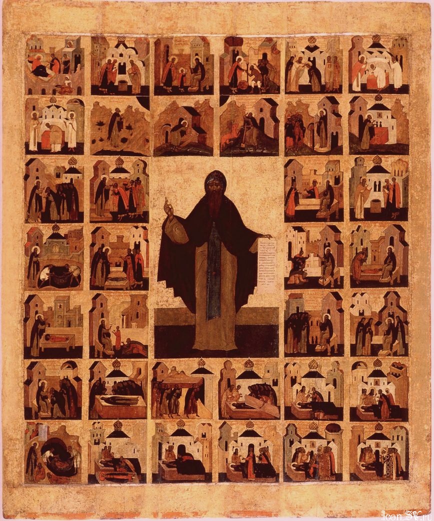 | Святой Варлаам Хутынский с житием Россия, Ярославль. 2-я половина XVI в. 143.5 х 120.5 см ЯХМ |