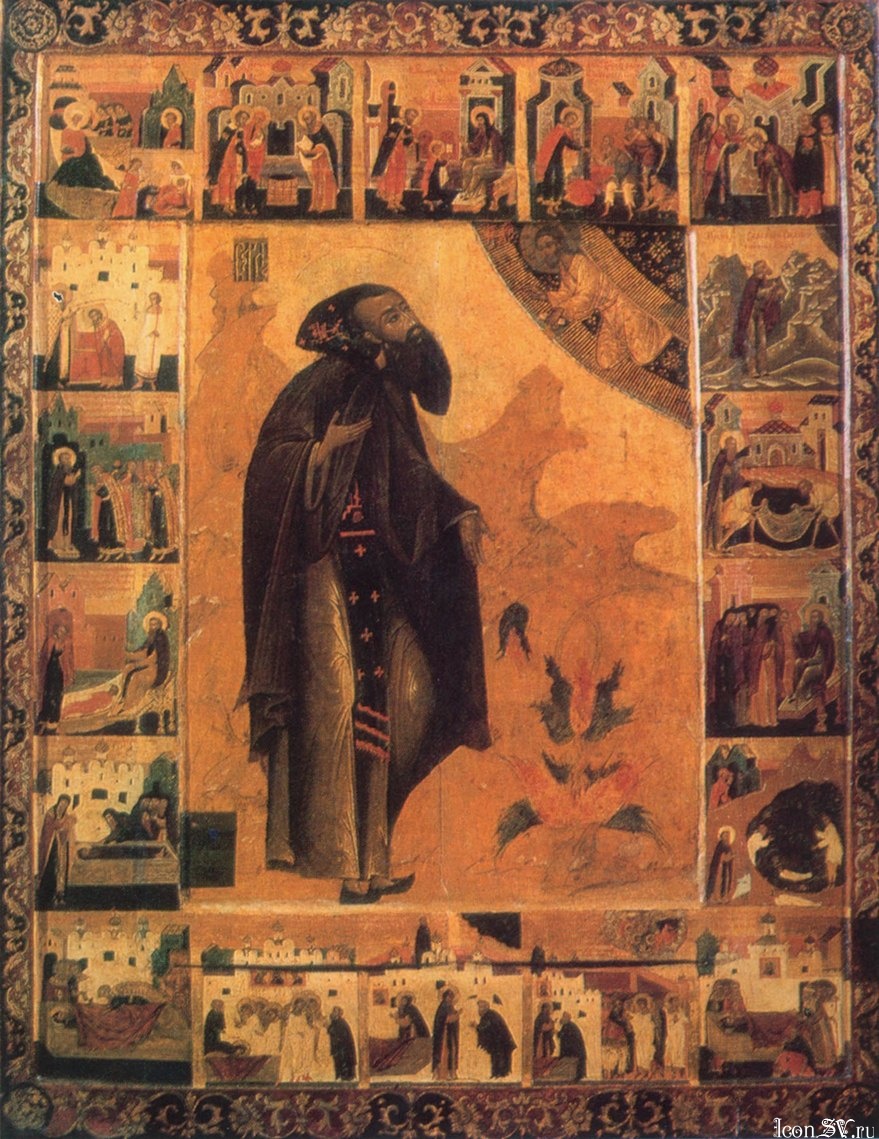 | Святой Варлаам Хутынский с житием Россия, Ярославль. 2-я половина XVI в. 143.5 х 120.5 см ЯХМ |