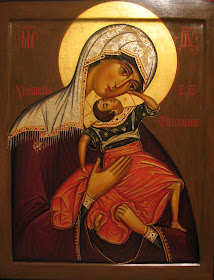 Радуйся, пророчество святаго Саввы освященнаго через икону Твою "Млекопитательница" исполнившая.