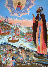 Это была дань новой иконографической традиции, соединявшей старую светскую новгородско-московскую традицию с новой, рыцарской и европейской. Известны многие иконы XIX-XX вв. этого же типа с клеймами, например, в Казанском соборе и в Государственном Русском музее. Однако старая владимирская монашеская традиция продолжала еще существовать.