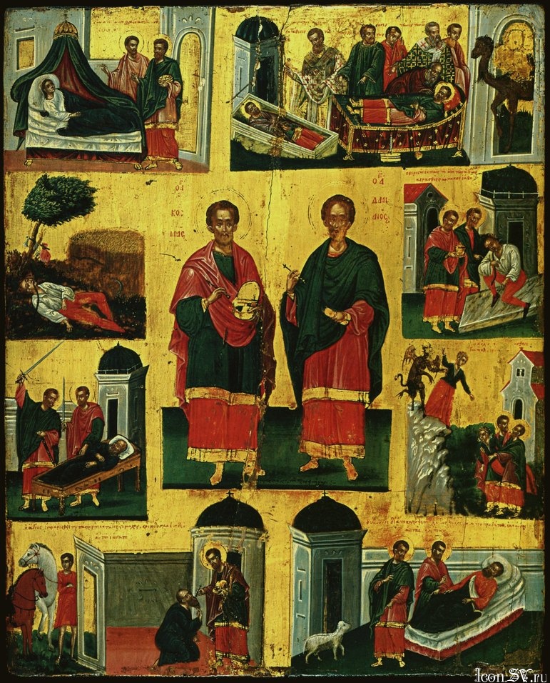 Величаем вас, чудотворцы славнии, Космо и Дамиане, и чтим святую память вашу, наставницы заблуждшим, исцелители болящим и собеседницы Ангелом.