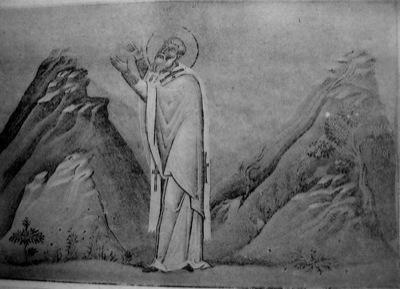 | Св. Аверкий Иерапольский. Фреска Благовещенской церкви монастыря Грачаница. Сербия (Косово). 1318 год. |