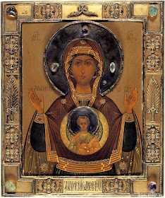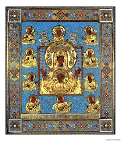 | икона Божией Матери Знамение , инкрустированный золотом, с драгоценными камнями. Принадлежала царствующей семьи Романовых |