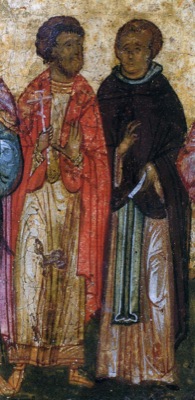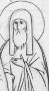 Прп. Акакий. Фреска ц. Спаса на Ковалёве в Новгороде. 1380 г. |