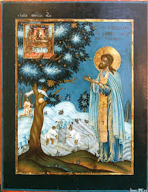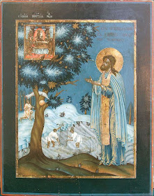 Видев красоту пустыни, Богом тебе дарованныя, преподобне отче, возрадовался еси духом, и образ Пресвятыя Богородицы тамо на древе поставил, во Имя Ея освятил еси место то, да будет Она ему Покровительницею и Попечительницею навсегда, о сем похваляюще тя сице тебе зовем: