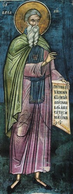 | Прп. Варлаам. Тзортзи (Зорзис) Фука. Фреска. Афон (Дионисиат). 1547 г. |