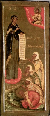 Минея -Январь(фрагмент).Икона.Русский Север. 1-я половина XVIв.Из коллекции Н.И.Репникова. В 1964 из собрания Ф.А.Калинина поступила в ГРМ.Санкт-Петербург. |