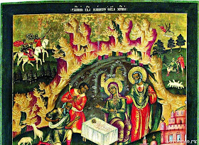 Дева днесь Пресущественнаго раждает, и земля вертеп Неприступному приносит, Ангелы с пастырьми славословят, волсви же со звездою путешествуют: нас бо ради родися Отроча младо Превечный Бог.
