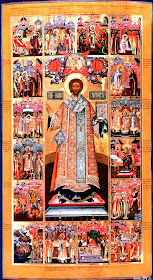 Ты многая и различная дарования от Господа приял еси, и яко раб благий и верный, вся данныя тебе таланты добре умножил еси: сего ради воистинну вселенский учитель был еси, яко всяк возраст и всяко звание от тебе получается. Се бо отроком послушания образ явился еси, юным целомудрия светило, мужем трудолюбия наставник, старым незлобия учитель, иноком воздержания правило, молящимся вождь от Бога вдохновенный, мудрости ищущим ума просветитель, ветиям доброглаголивым слова живаго источник неисчерпаемый, благотворящим милосердия звезда, начальствующим правления мудрого образ, правды ревнителям дерзновения вдохновитель, правды ради гонимым терпения наставник: всем вся был еси, да всяко некия спасаеши.