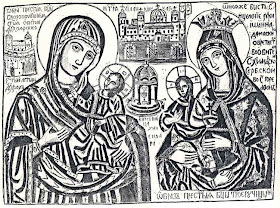 | Богоматерь Скоропослушница из монастыря Дохиар и Богоматерь Троеручица.Монастырь Хиландар Вторая половина XIX в. 22.5 × 35.6 см |