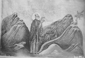 | Прп. Исихий Хоривит. Фреска Казанского собора Оптиной пустыни. Около 2000 года. |