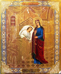 Архангел Гавриил, возвещая Пресвятей Деве Марии безсеменное зачатие от Нея Сына Божия, рече: Радуйся; Благодатная, Господь с Тобою, Благословенна Ты в женах, мы же грешнии гласу Архангелову подражати дерзающе c верою и любовию благоговением вопием пения сицевая: