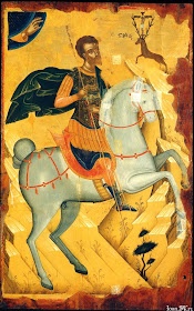 | Вмч. Евстафий. Феофан Критский и Симеон. Фреска церкви свт. Николая. Монастырь Ставроникита. Афон. 1546 год. |