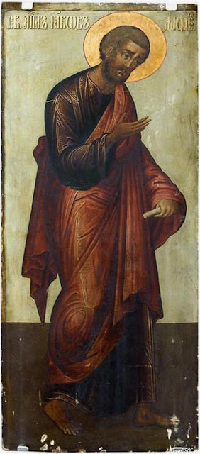 | Апостол Иаков Алфеев Преовраженский храм Покровского монастыря, Франция. Monastère Orthodoxe Notre Dame de Toute Иконописец: Ярослав Добрынин |