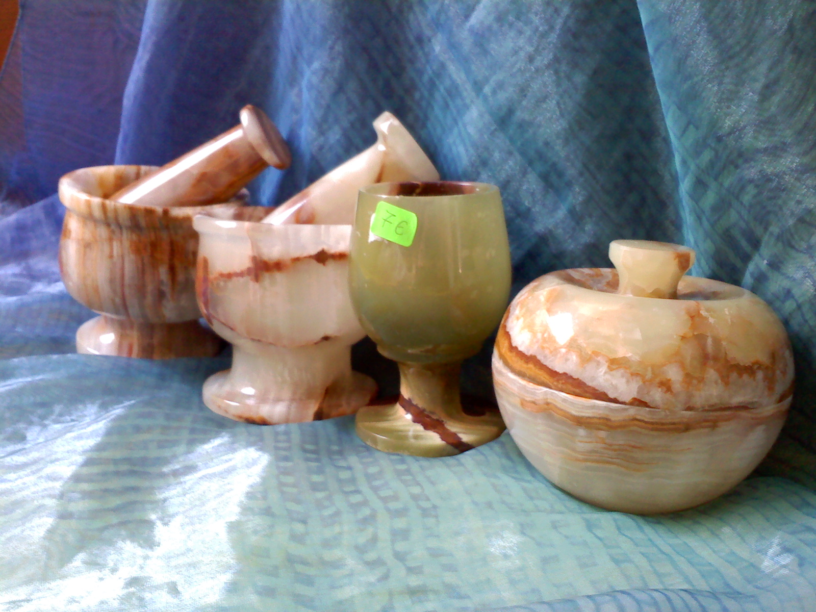 И В ЗАВЕРШЕНИЕ - ОНИКСОВЫЕ СТУПКИ, БОКАЛ И ВАЗОЧКА С КРЫШКОЙ